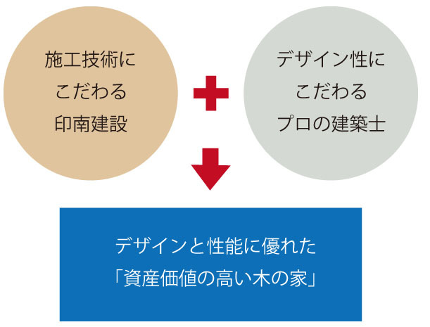 また、デザインにこだわる設計事務所の施工を多く請け負った中で培った、デザインの仕上げ施工ノウハウも社内に蓄積されています。その施工技術に自信を持つ印南建設と、若くてセンスのある建築士とのコラボレーションによって、東京の都心部で「資産価値の高い木の家」を求めるお客様の注文住宅をお手伝いしています。