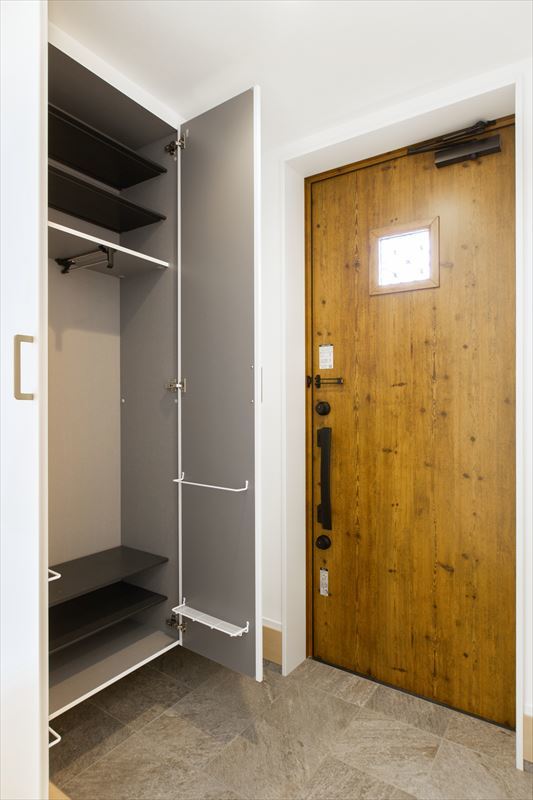 室内ドアは、天井の高さまでのハイドアですっきりとしたデザインとなり、より空間を広く見せています。